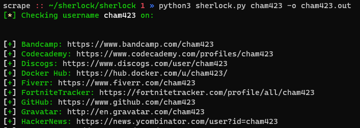 python3 sherlock.py cham423 -o cham423.out
