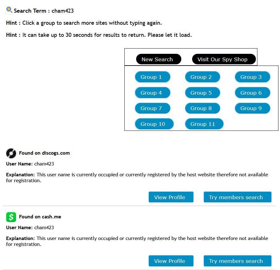 Profile Discovery by Username